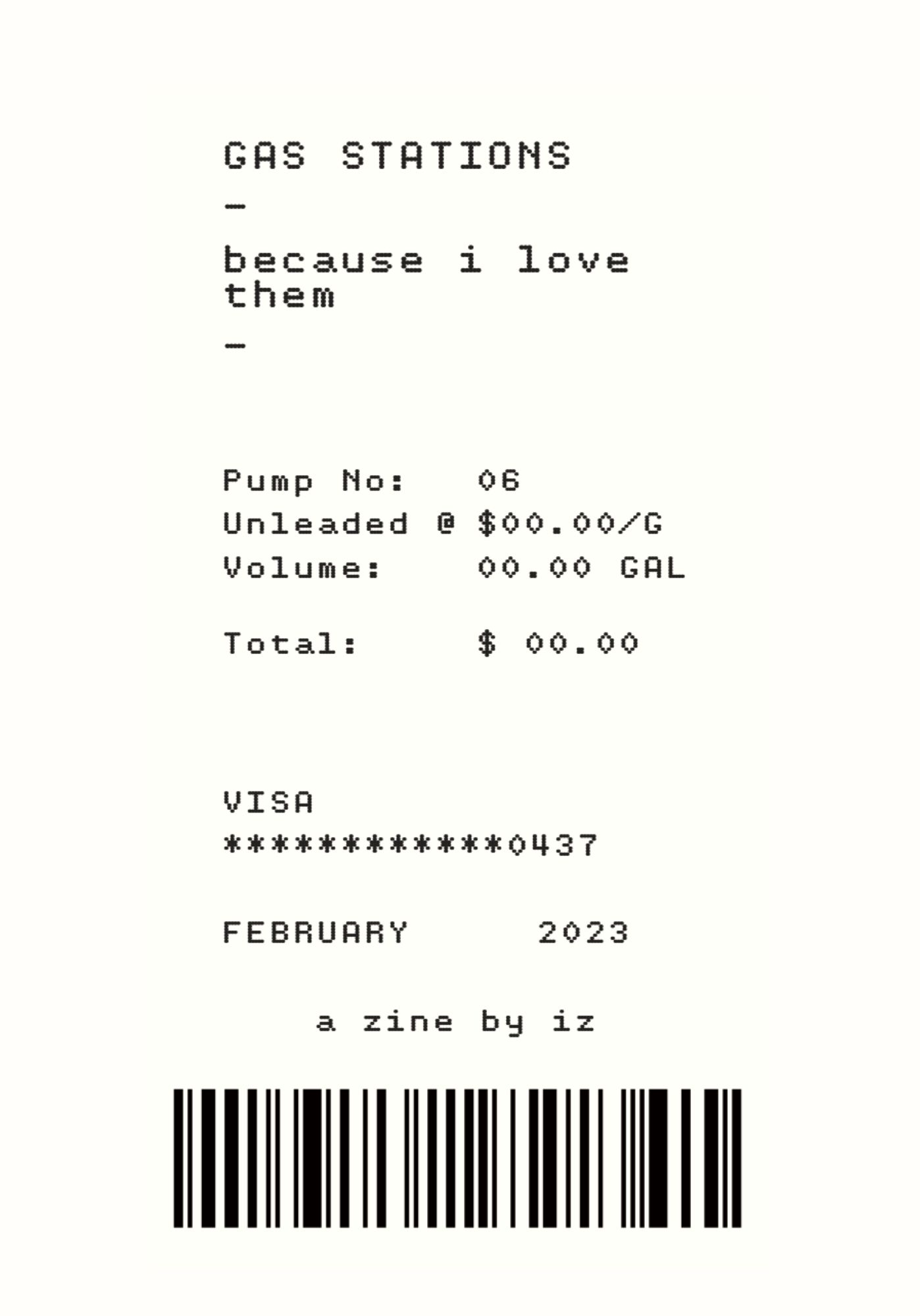 i draw gas stations because i like them, and i like them because i find their banality charming and interesting. despite being everywhere, being identifiable to everybody, and being a necessity to an unsurprising majority of the world, no one really gives them a second thought. something about that just fascinates me. i've become attached to the comfort and familiarity of certain local gas stations and get legitimately excited whenever i visit a new one somewhere. to find myself at a gas station is to find myself in the seat of serendipity. it’s the perfect opportunity to recognize the underlying beauty in what we all too commonly and neglectfully categorize as mundane. but, in short, i really just think they’re cool.